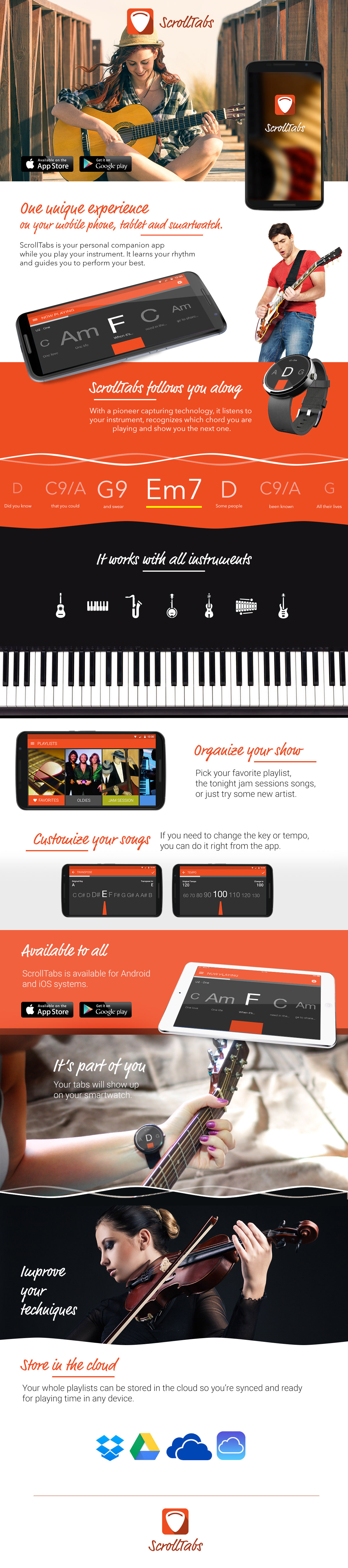 A conceptual project developed in 2014 that enabled guitarists to play while the mobile application or smartwatch recognized the chord played and provided guidance on the next chord.